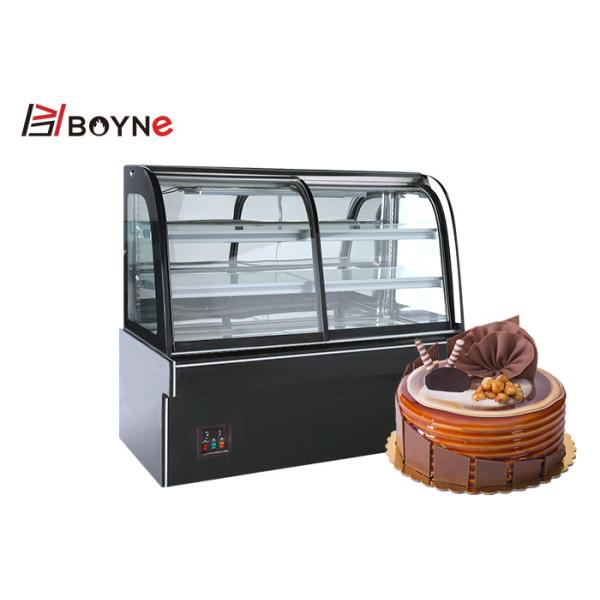 Curve Glass Front Door Opened Cake Display Case With LED Light Images |